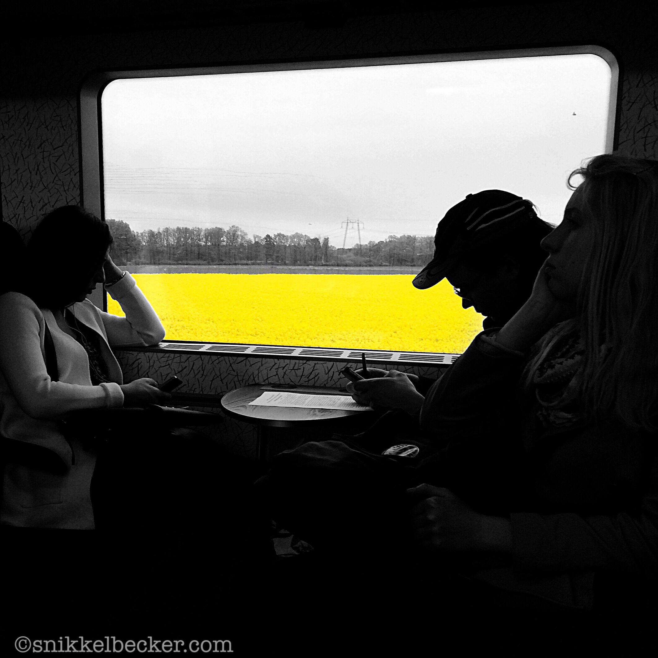 Kändisar, rookisar, upptagna säten, smidiga datorer, klumpiga resväskor i giftigt plast. Blickar, leenden, komiska stycken, ovälkomna knuffar och charmiga möten. Precis som i livet självt.