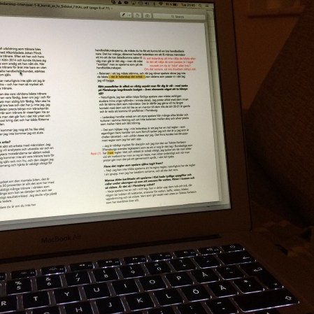 Kanske finns det fortfarande ytterligare fadäser i den text jag nu så smått börjar bli hemmablind inför. Skulle så visa sig vara fallet bör jag kanske låta det bero. Som terapi.